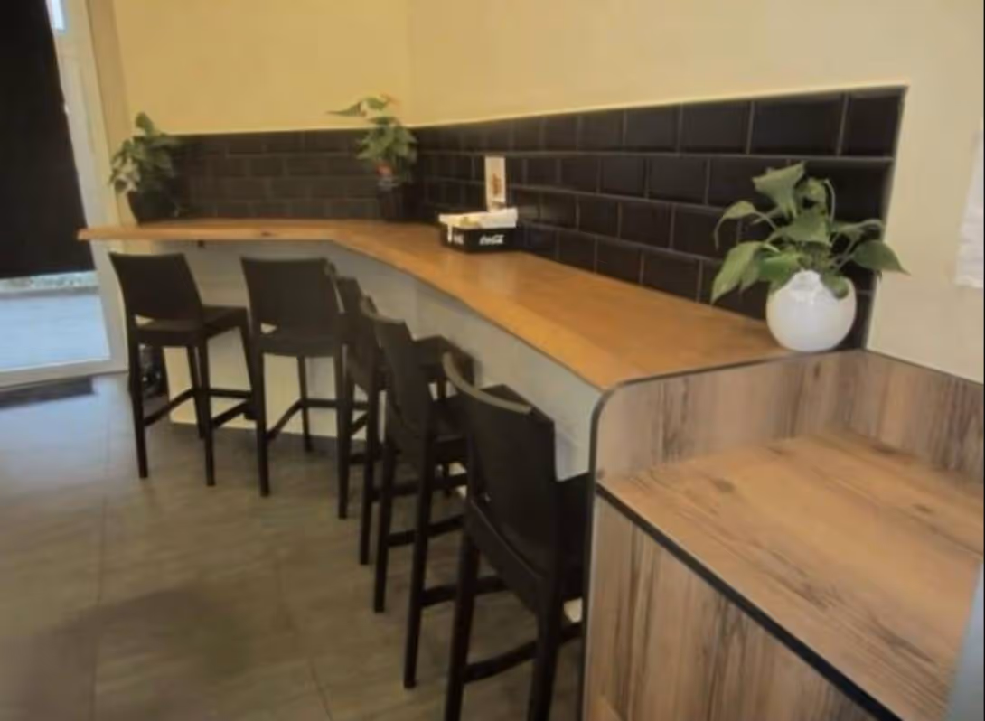 De zaak bevindt zich vlak bij scholen, het gemeentehuis en talrijke winkels, wat zorgt voor een dagelijkse stroom van vaste klanten.