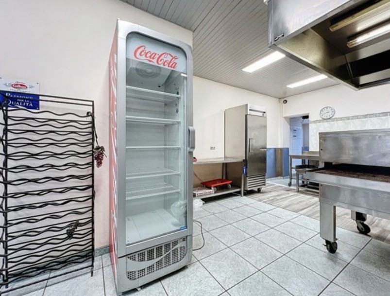 Volledig uitgerust: pizzauven, kookfornuizen, afzuigkappen, rekken, koelcellen, diepvriezers, deegmachines, koelkasten, deegbollers… alles is aanwezig.